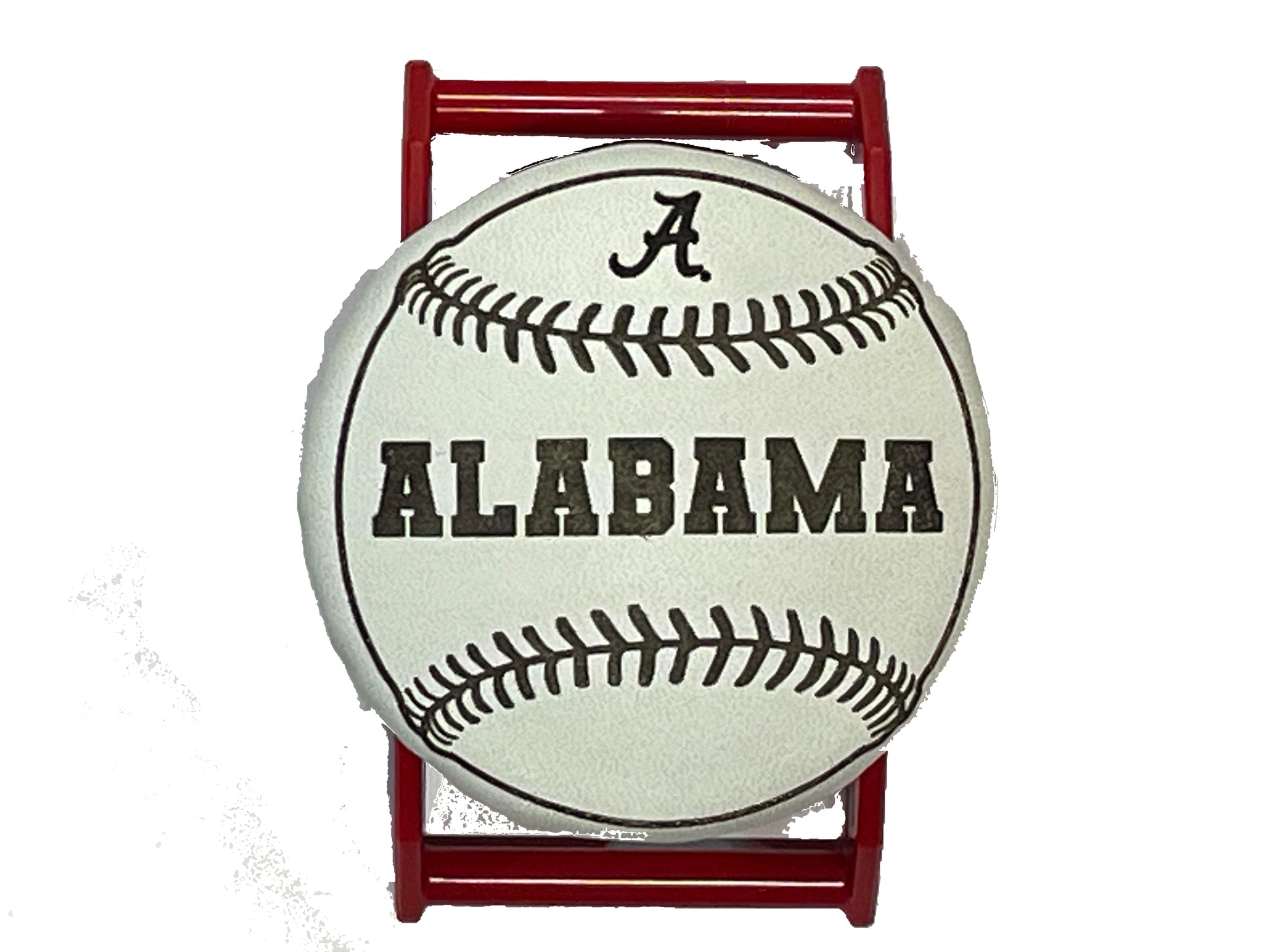 Alabama Baseball White Leather on Red SPEC. Includes a black Molle compatible clip