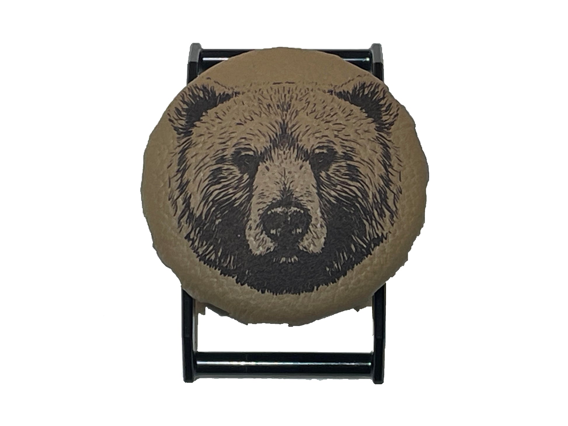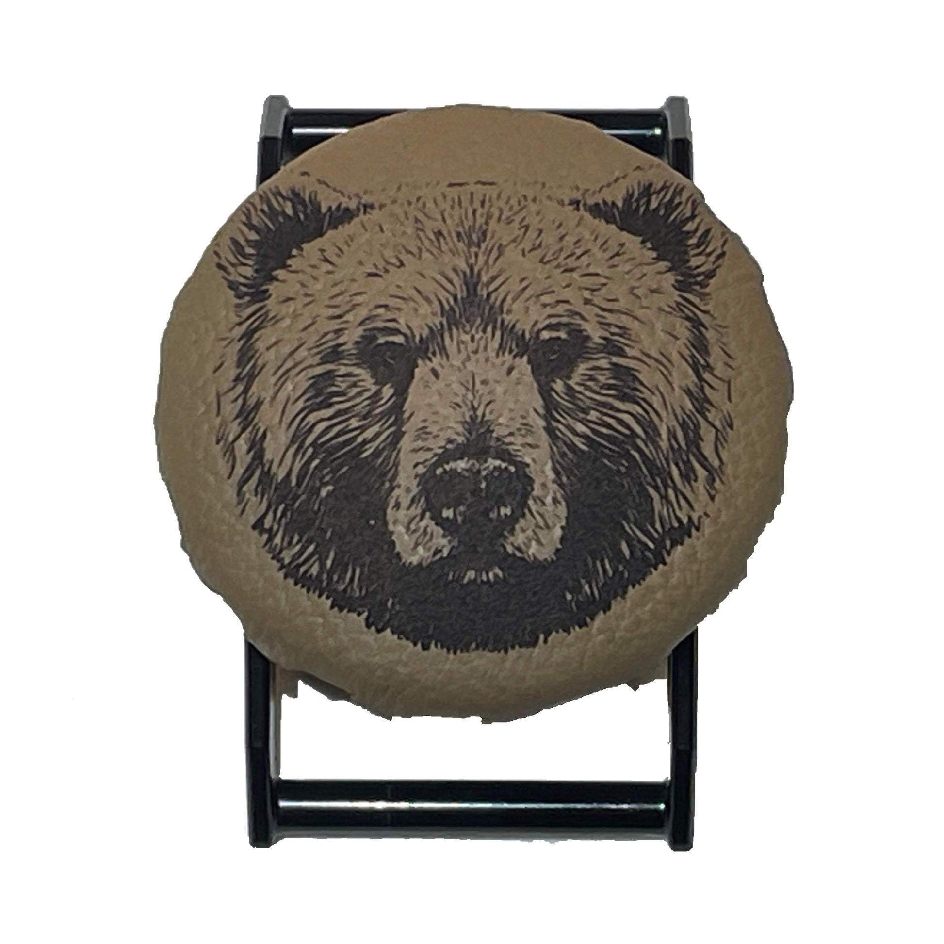 Laser Engraved Bear on Brown Leather on Black SPEC. Includes a black Molle compatible clip