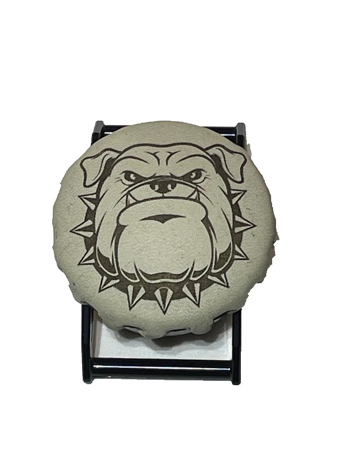 Laser Engraved White Bulldog on Black SPEC. Includes a black Molle compatible clip