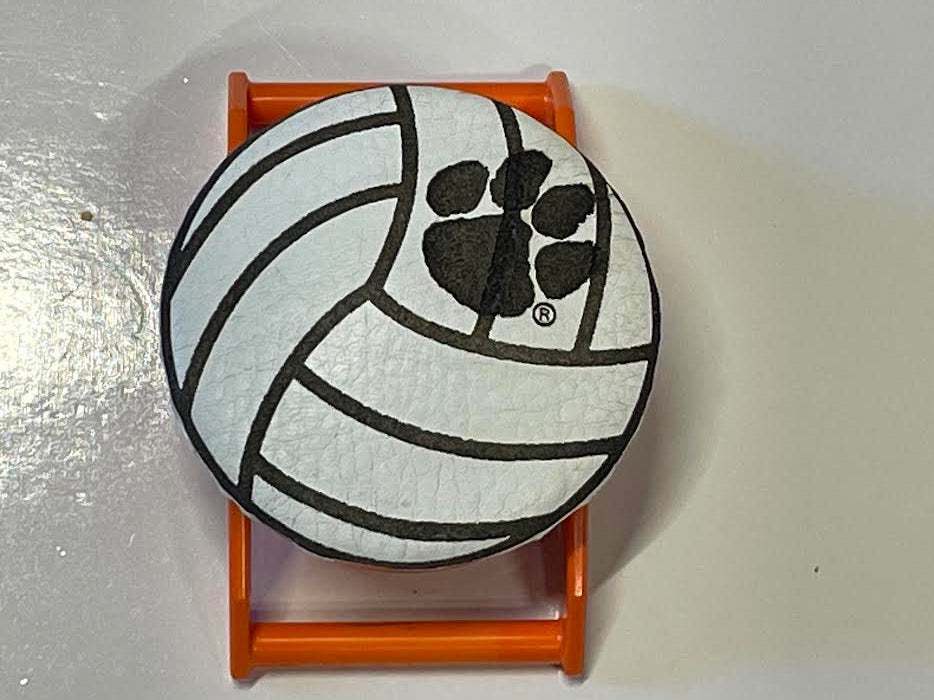 White Leather Volleyball With Tiger Paw on Orange SPEC. Includes a black Molle compatible clip