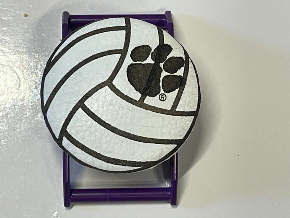 White Leather Volleyball With Tiger Paw on Purple SPEC. Includes a black Molle compatible clip