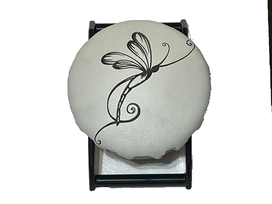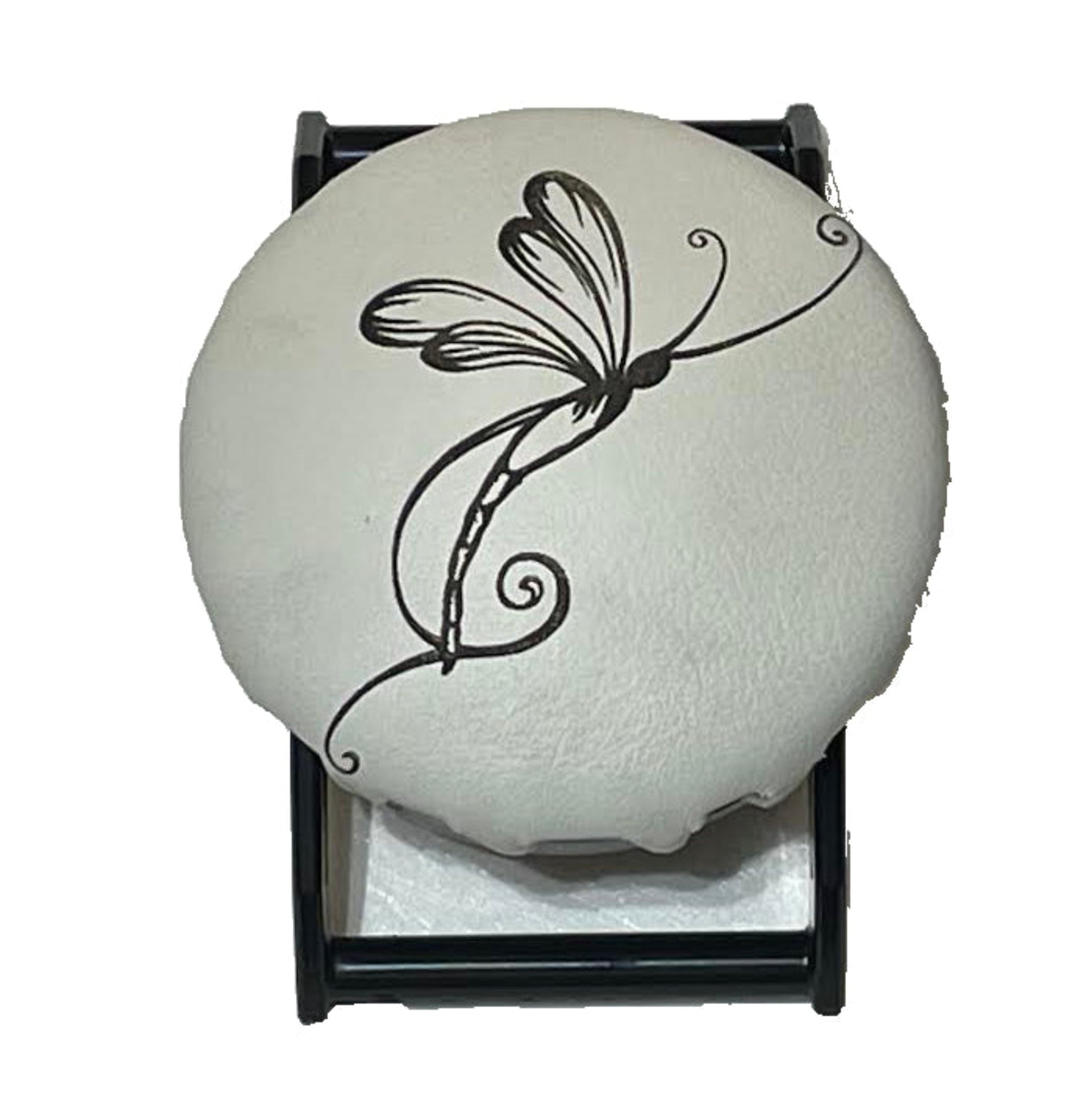 Dragonfly White Leather on Black SPEC. All SPECs come with a black Molle compatible clip.