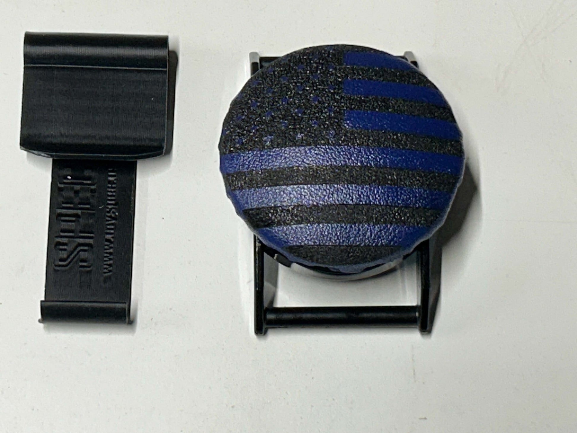 Laser Engraved Flag Blue Leather on Black SPEC