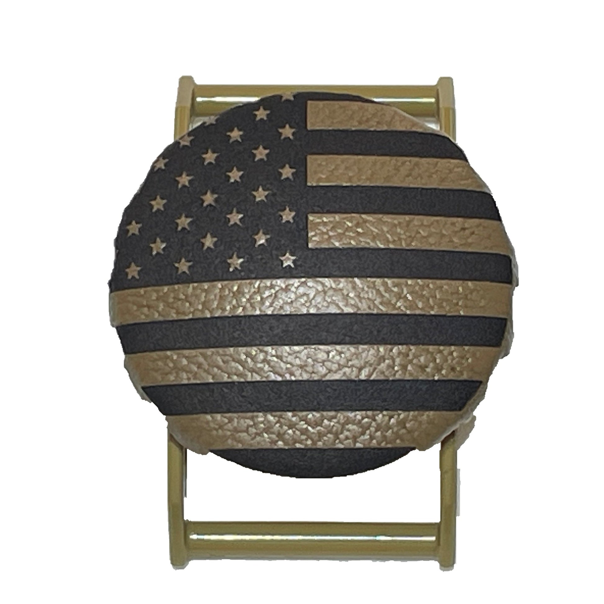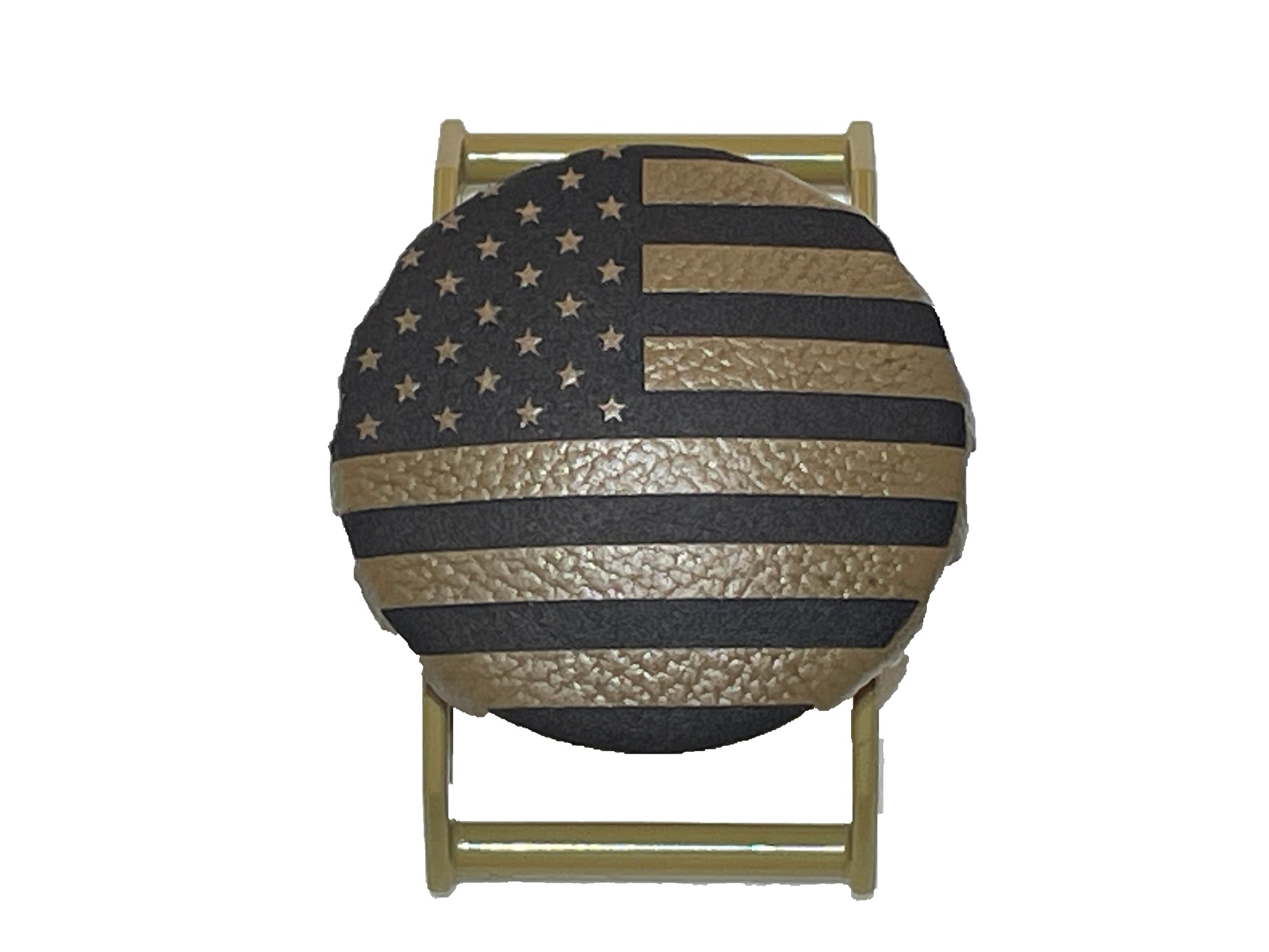 Laser Engraved Flag Khaki Leather on Bronze SPEC with Black Clip