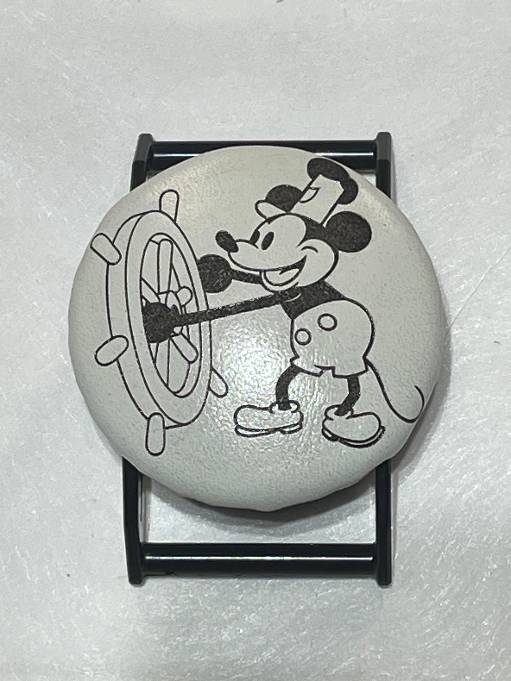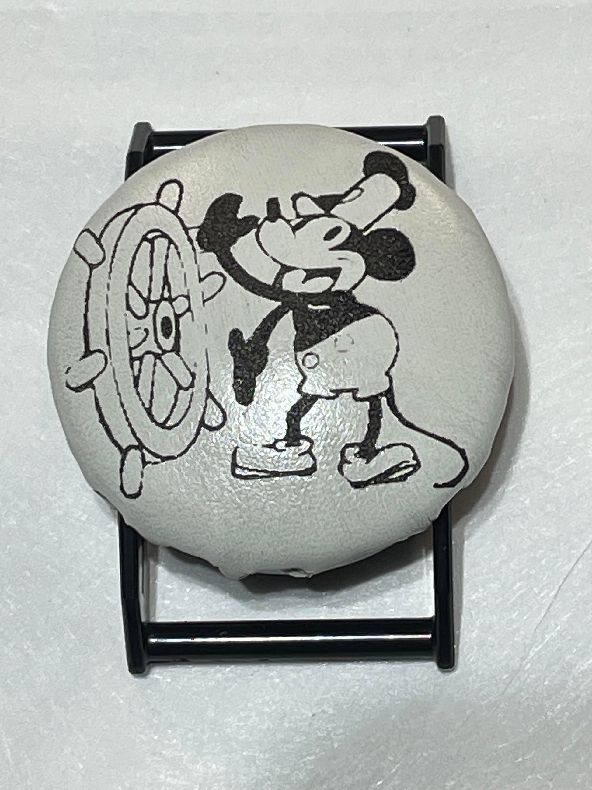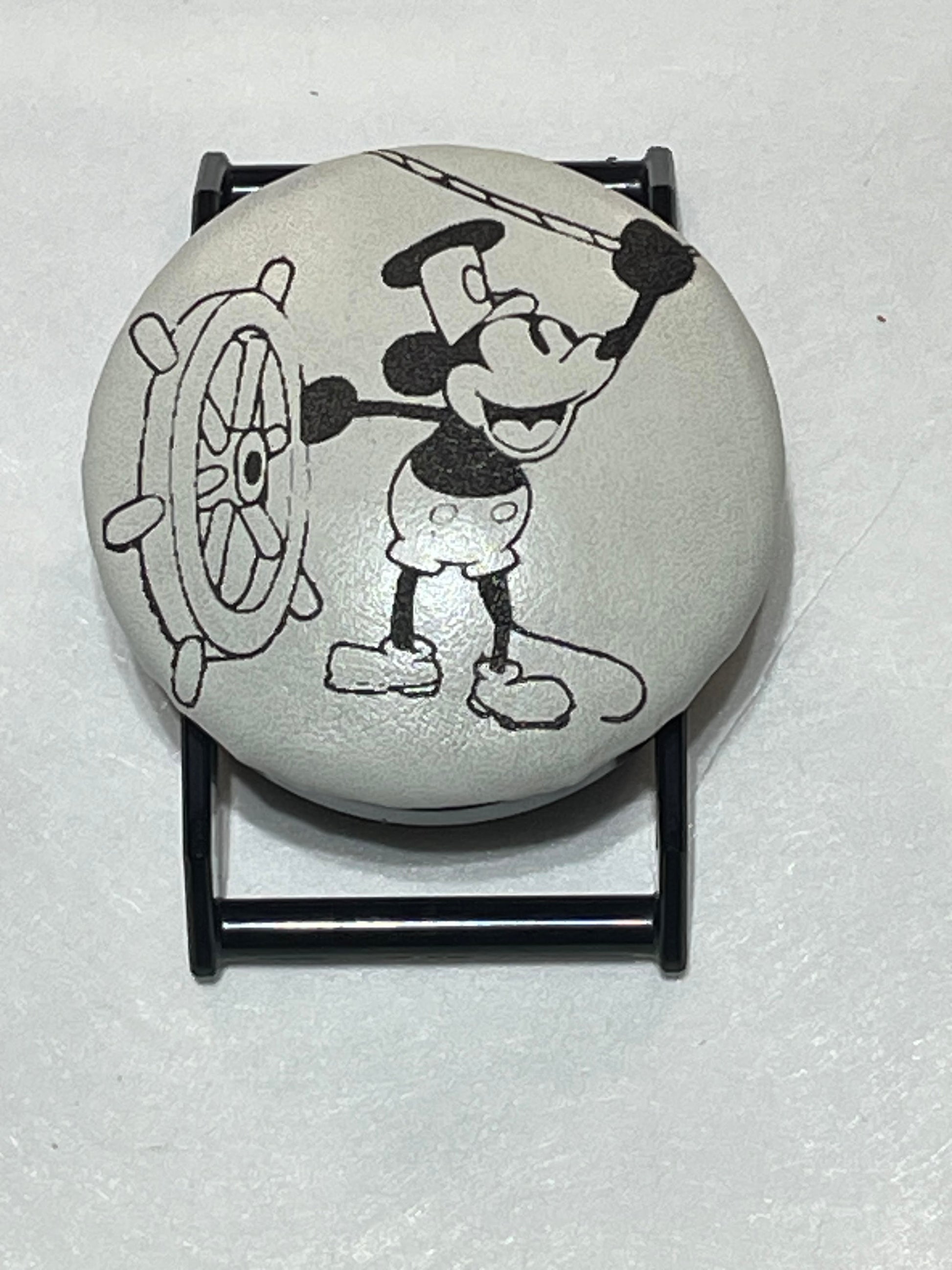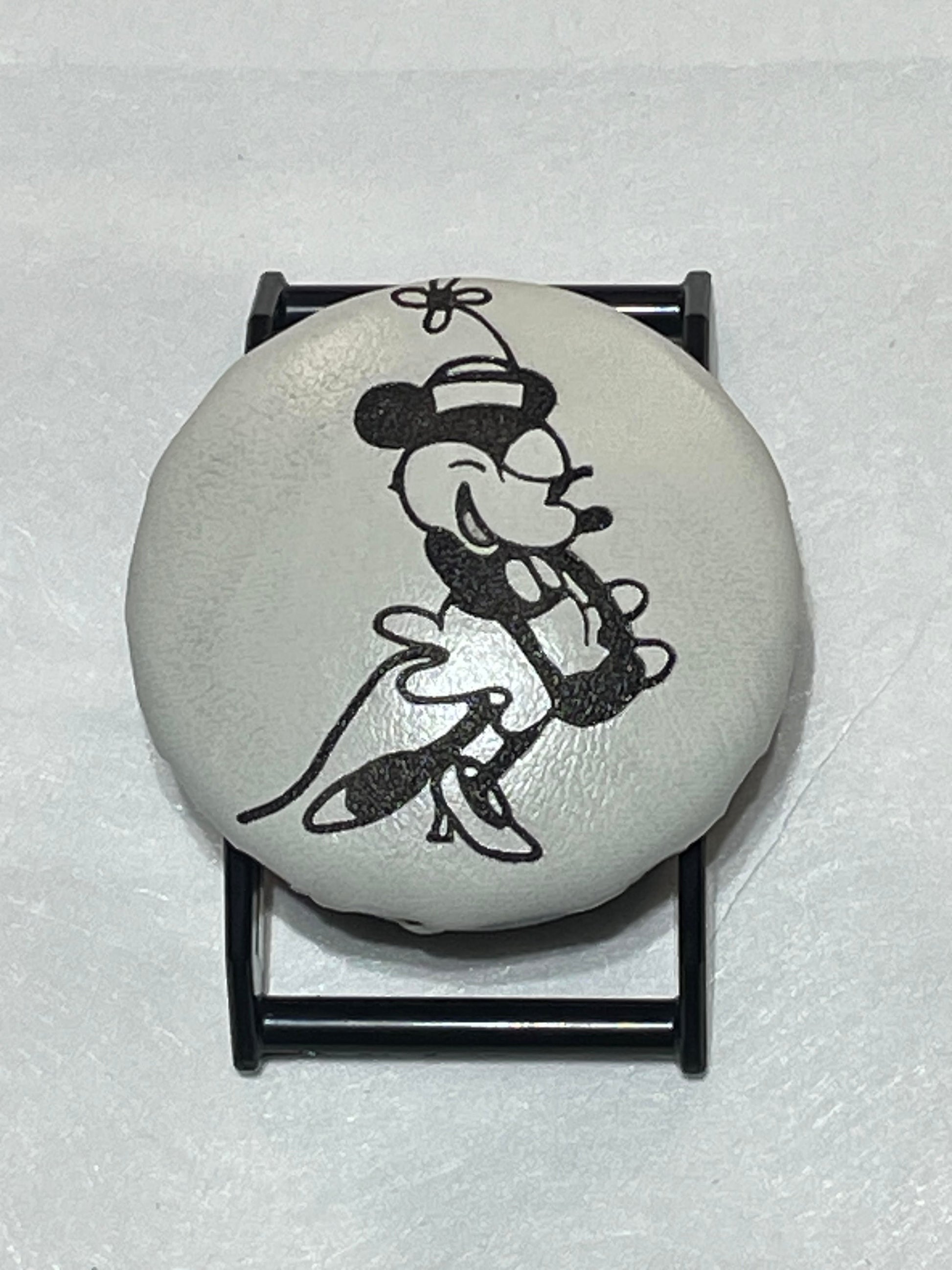 Adorable Steamboat Willie ready for an air tag to keep track of your kids or stuff at the park or anytime. Recommend getting a black Long Clip for 3.00. It makes attaching your SPEC a little easier.