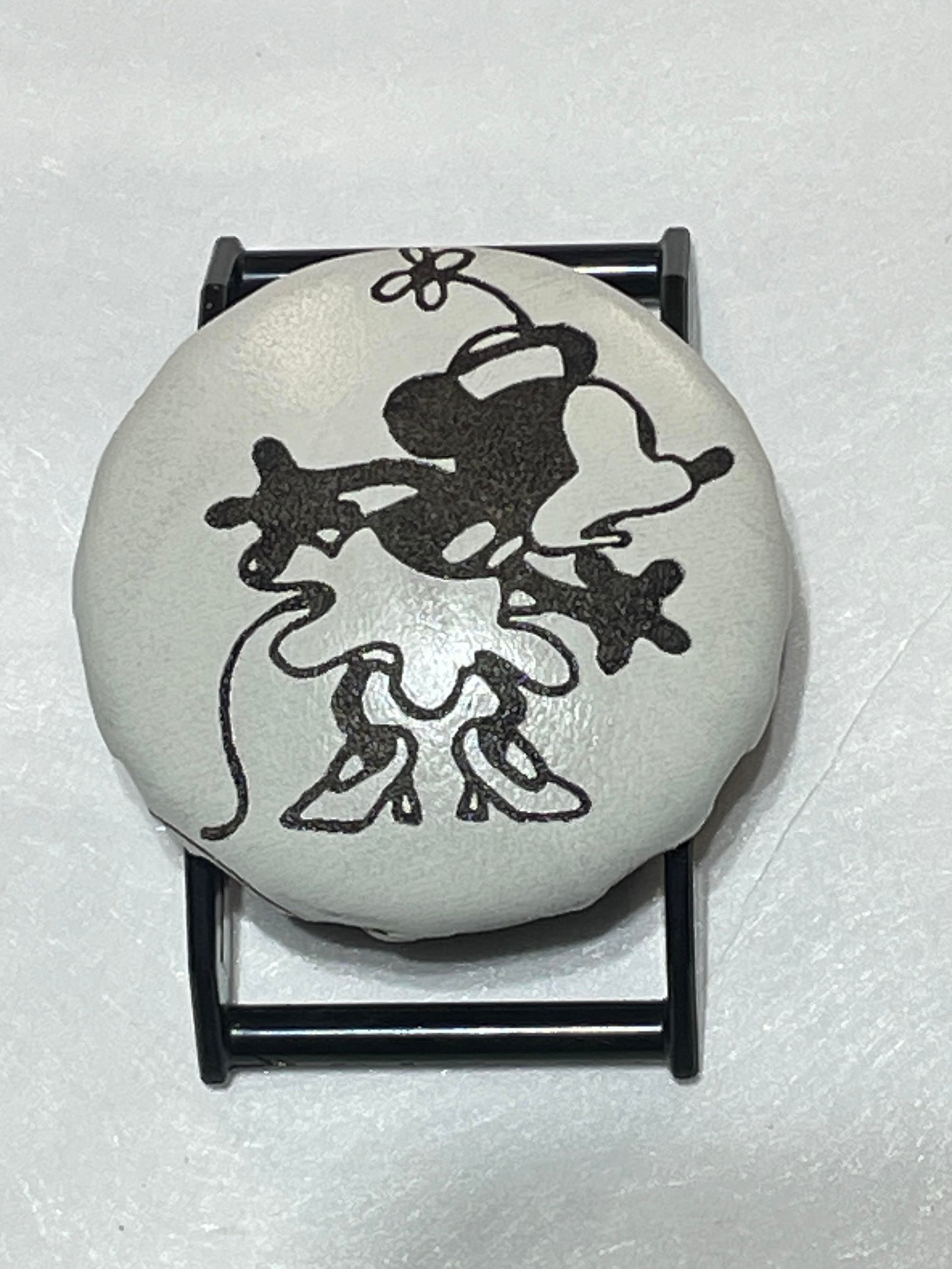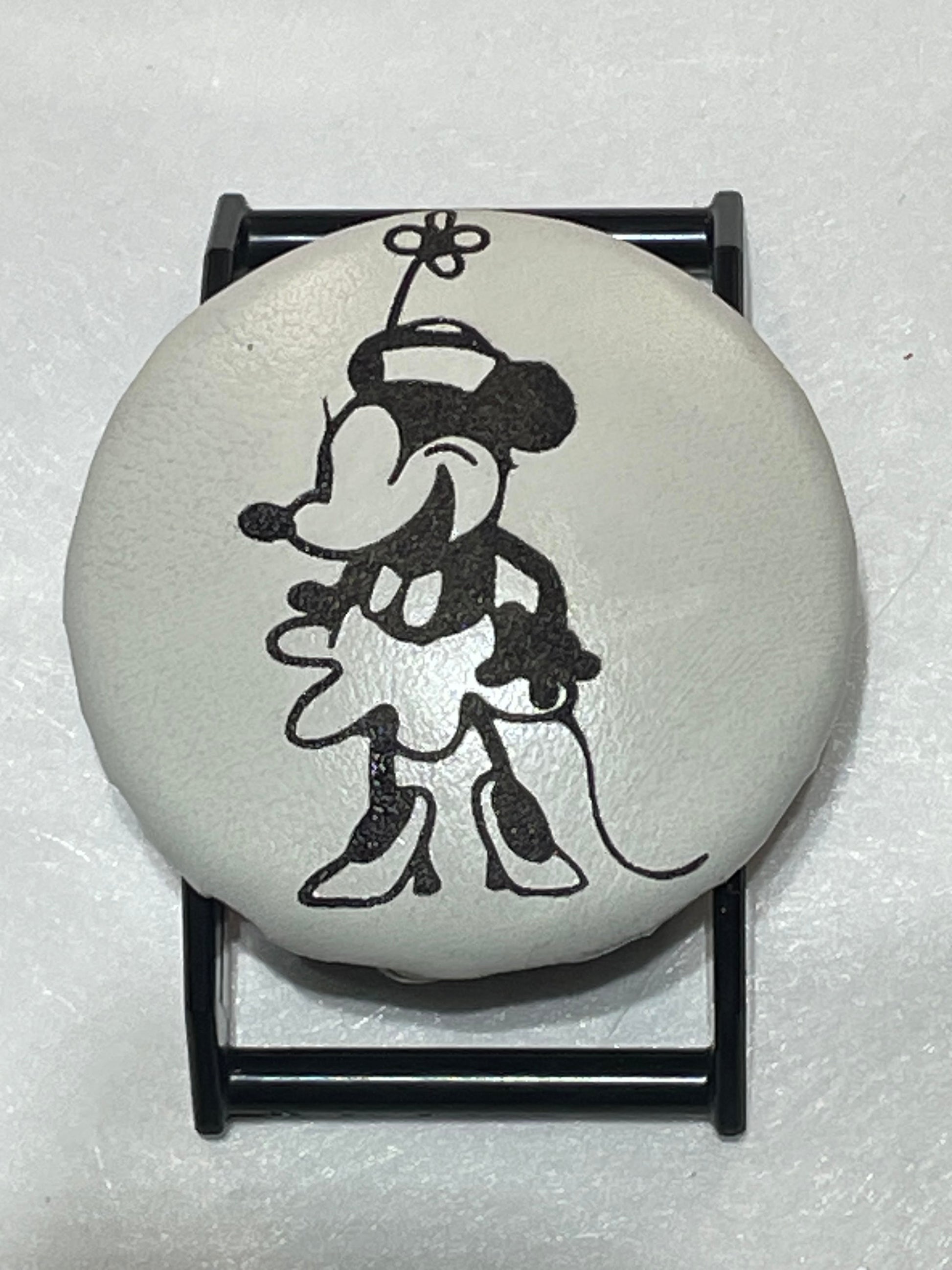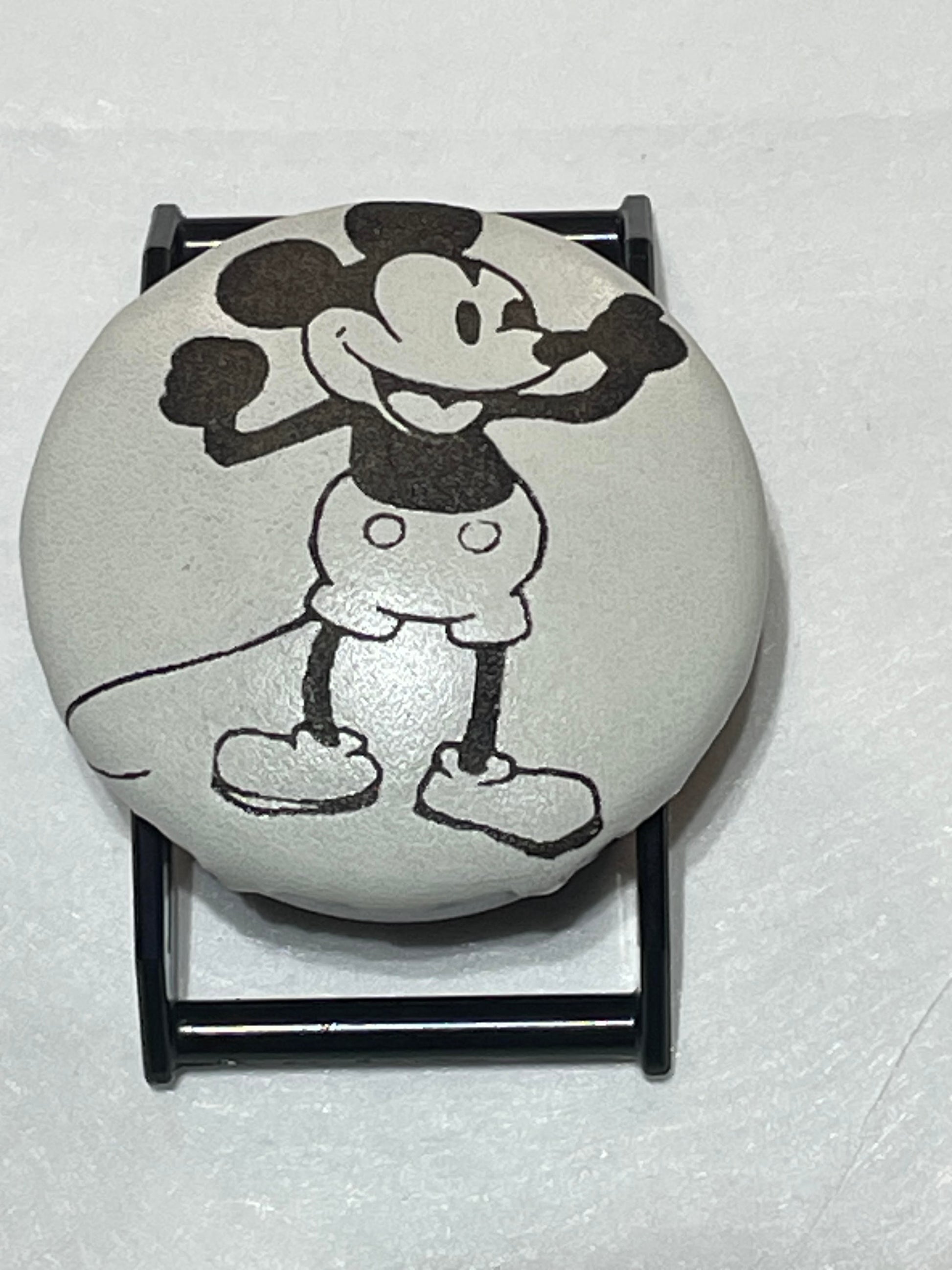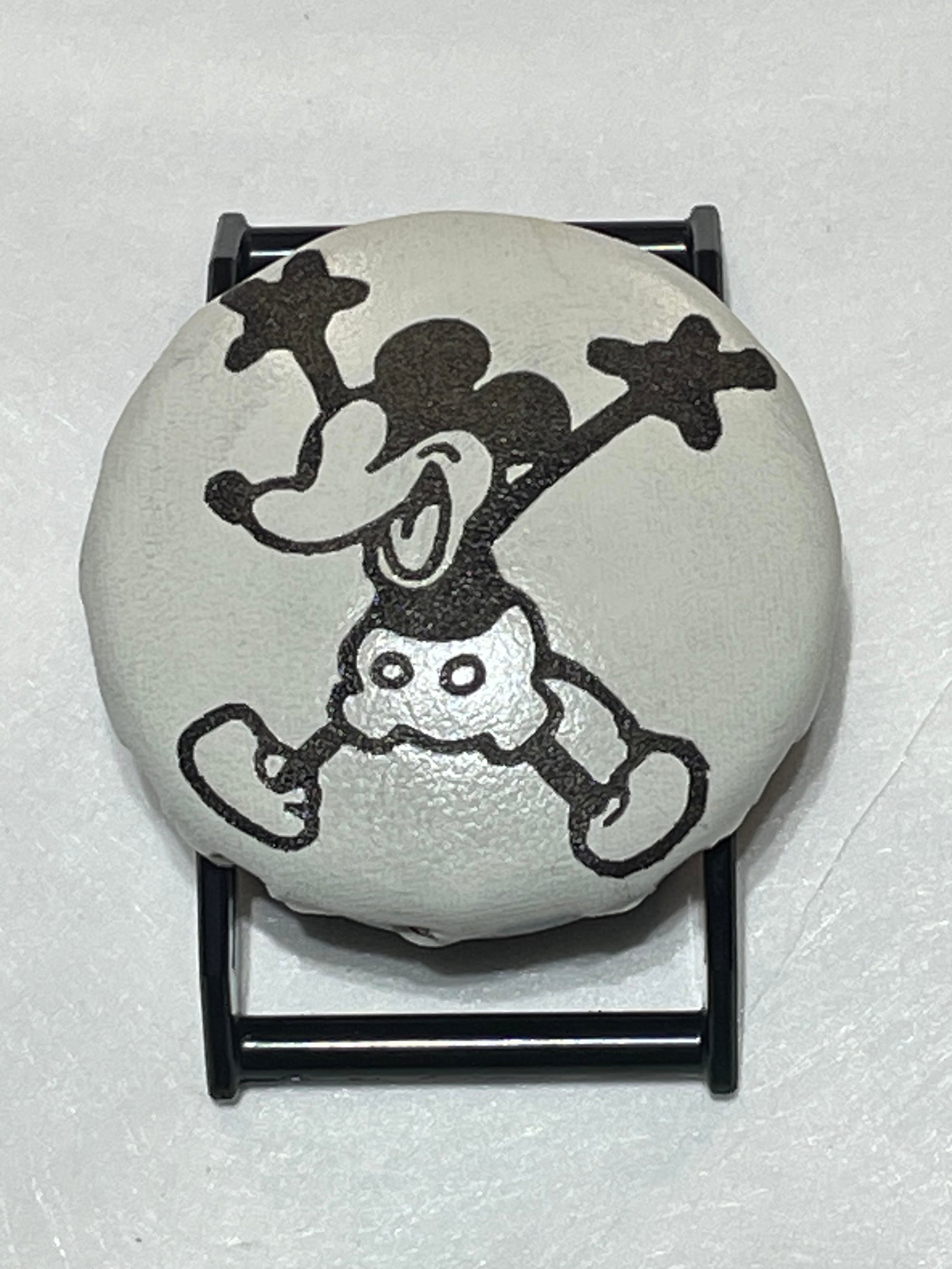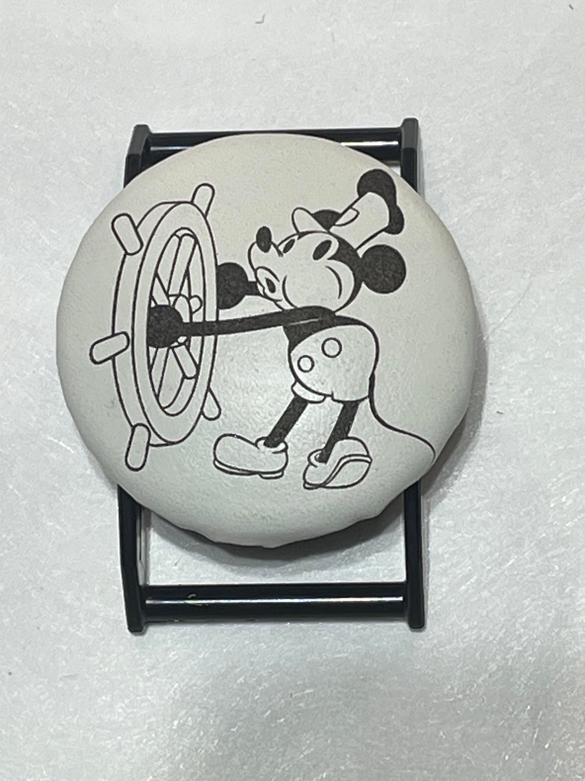 Adorable Steamboat Willie ready for an air tag to keep track of your kids or stuff at the park or anytime. Recommend getting a black Long Clip for 3.00. It makes attaching your SPEC a little easier.