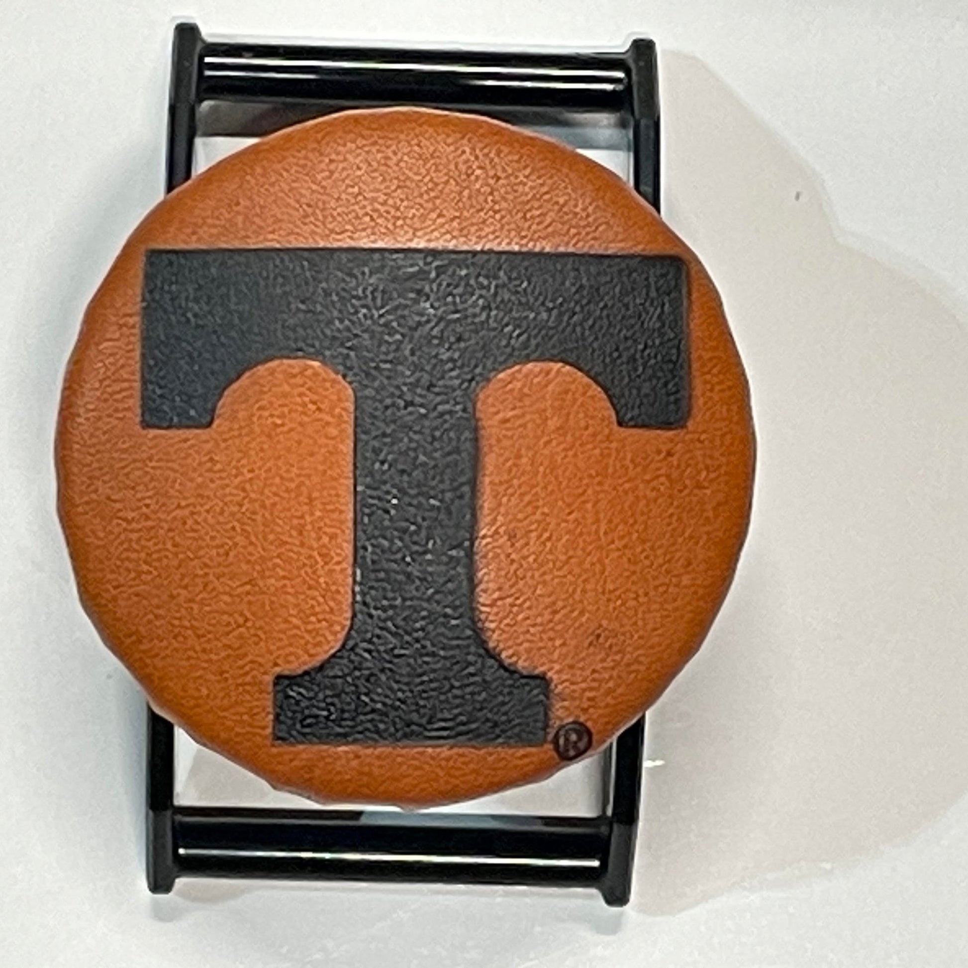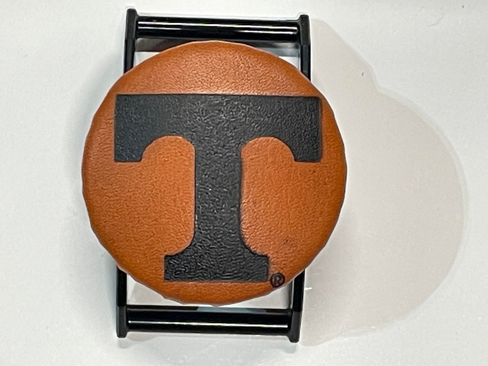 UT Logo Burnt Orange Leather, Black SPEC. All SPECs come with a black Molle compatible clip.