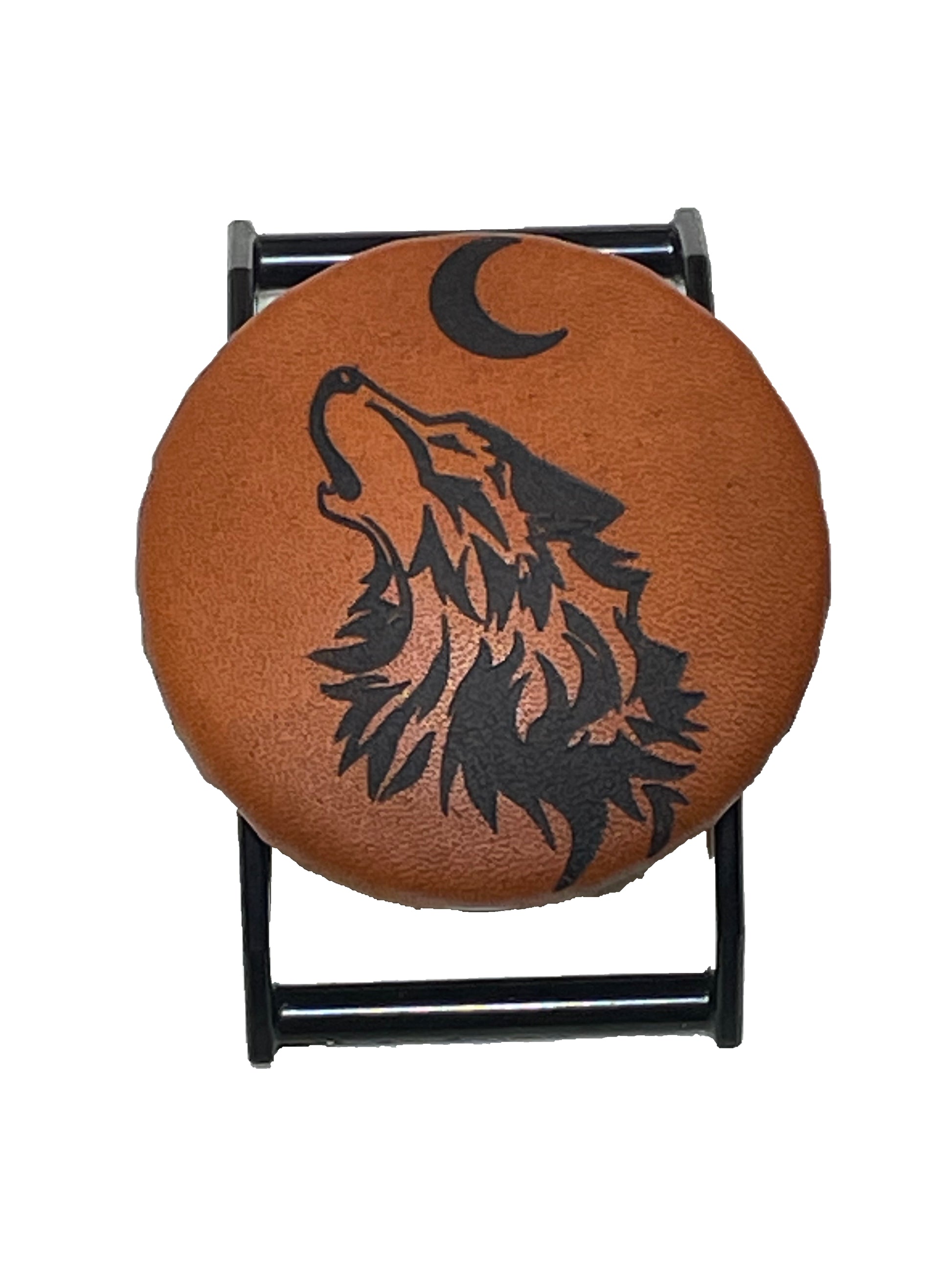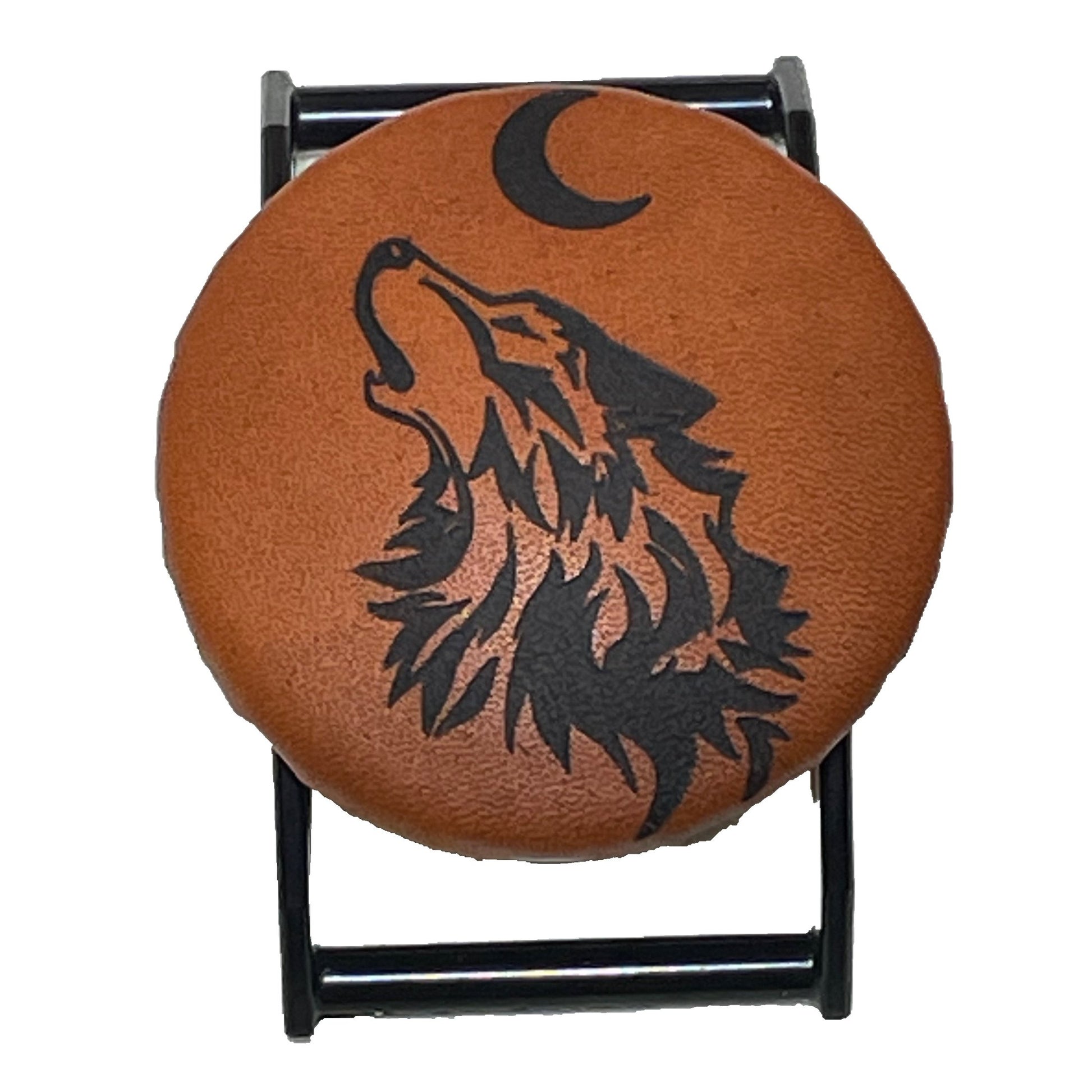 Laser Engraved Leather Glued/Hand Stitched to the SPEC. Includes a black Molle compatible clip